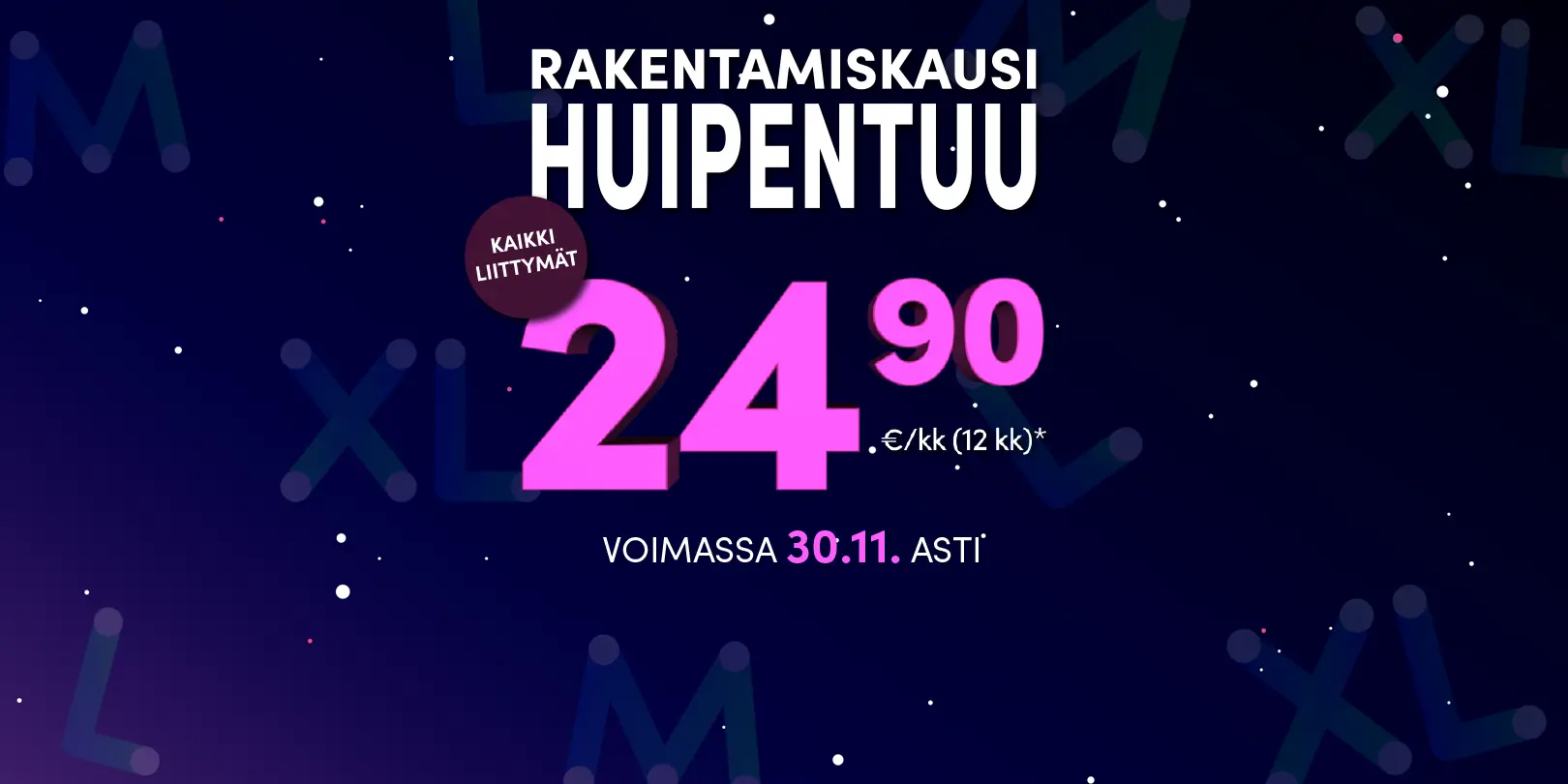 *12 kk jälkeen 49,90 - 79,90 €/kk valitusta liittymästä riippuen. Sopimuksen kokonaishinta 298,80 € / 12 kk. Tarjous voimassa 30.11.2025 asti uusille asiakkaille kampanja-alueilla.